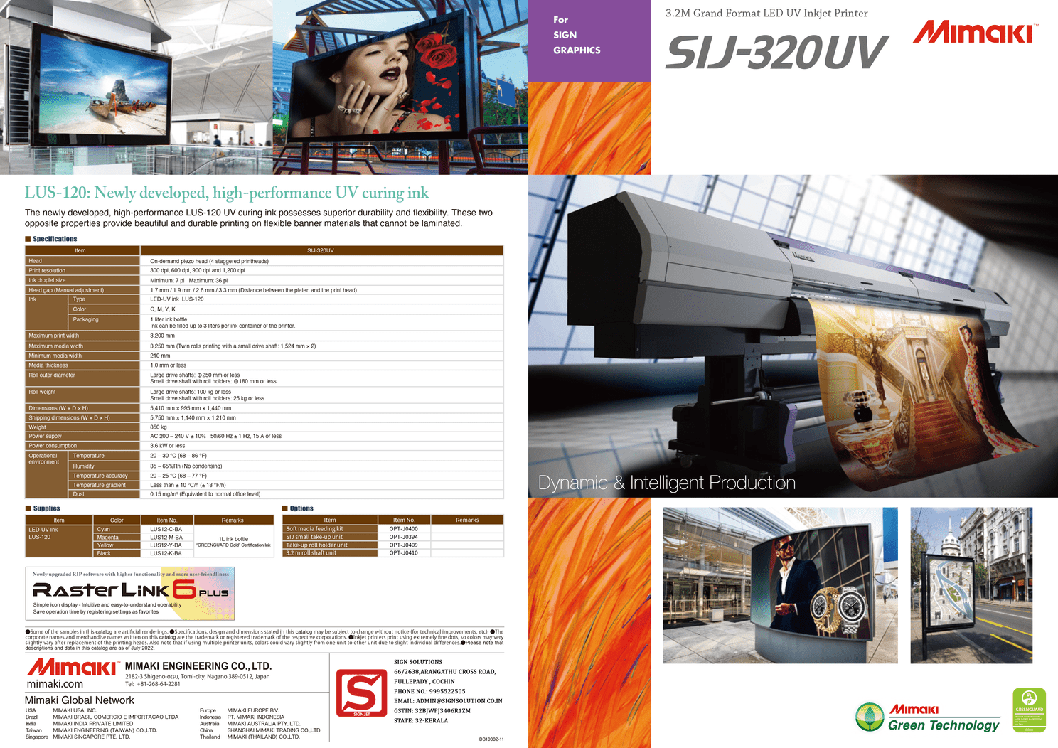 The all-new Mimaki SIJ-320UV grand format LED-UV inkjet printer delivers exceptional superwide print quality up to 3.2 m for high-volume production of banners, retail, and exhibition graphics, with added versatility from simultaneous twin-roll printing.